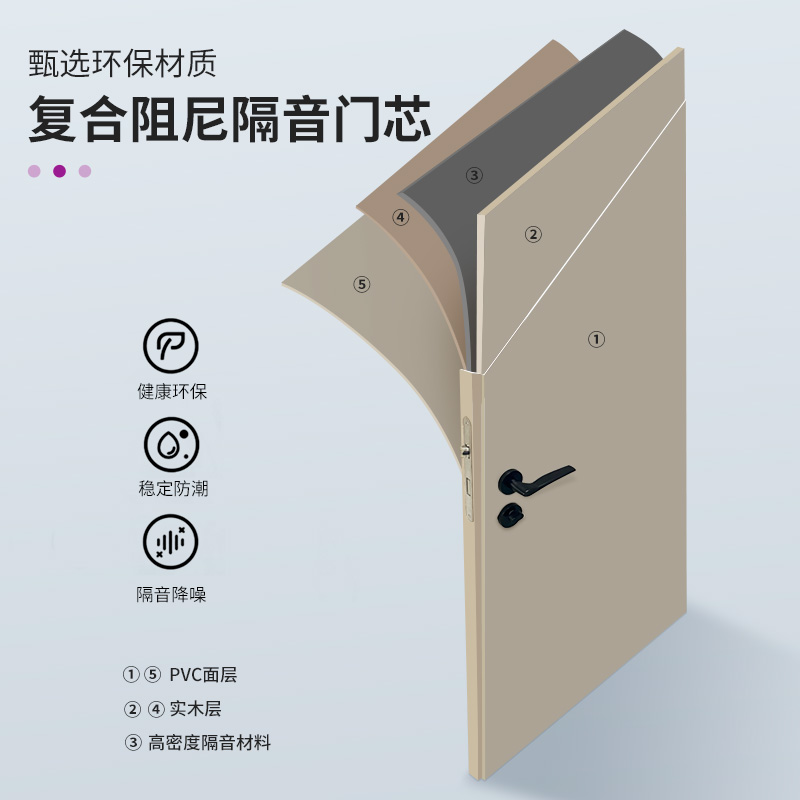 內(nèi)部材質(zhì):采用9層芯材復(fù)合,內(nèi)置多層阻尼隔音材料,德國進(jìn)口隔音門芯